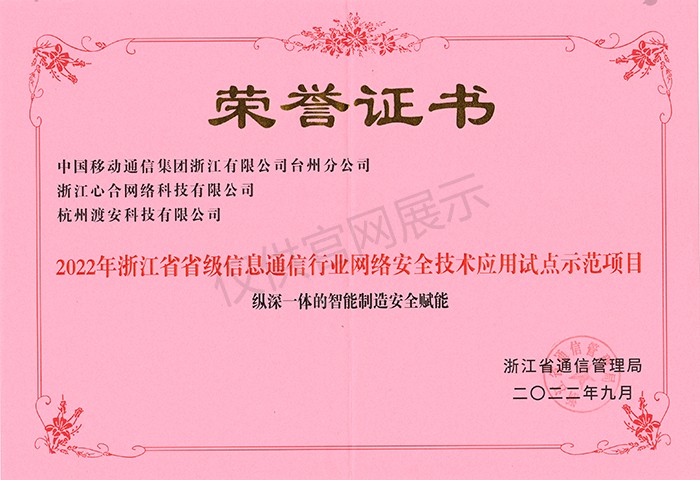 2022年浙江省省级电信和互联网行业网络安全技术应用试点示范项目