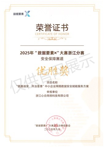 2025年“数据要素X”大赛浙江分赛安全保障赛道优胜奖